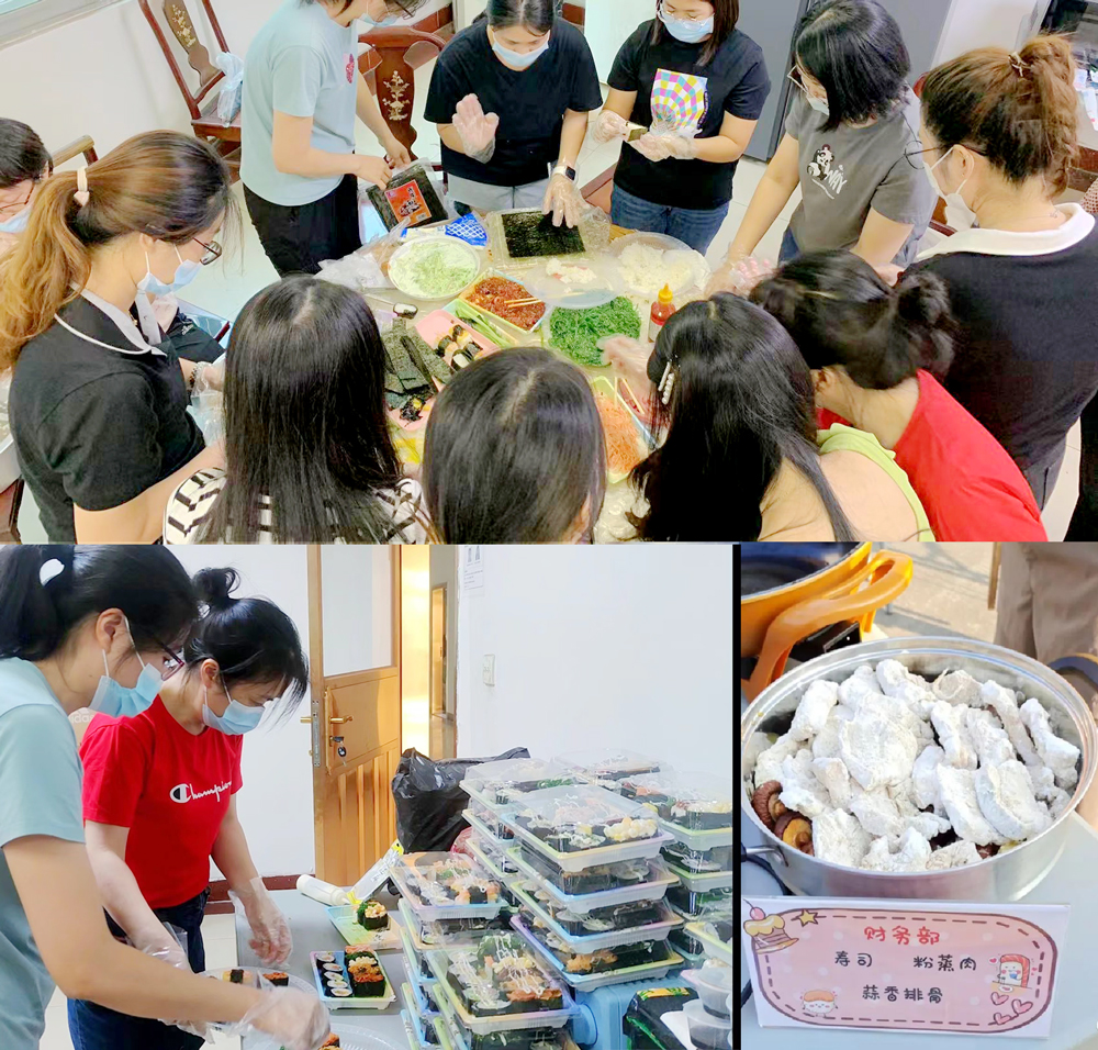 ↑财务部:寿司、粉蒸肉、蒜香排骨