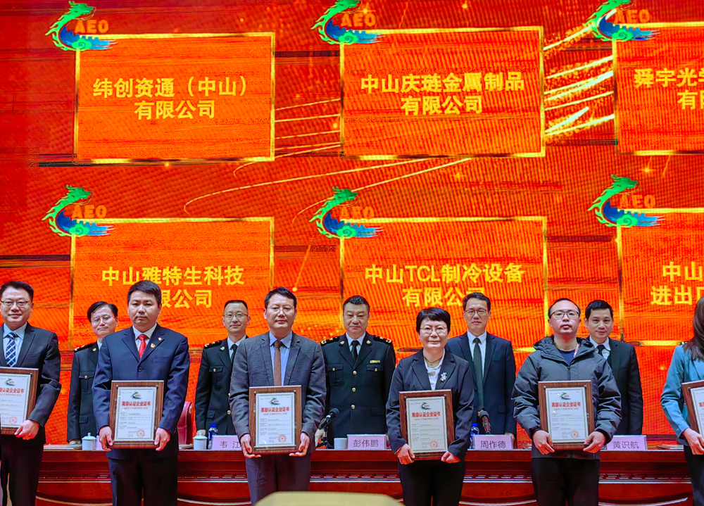 2月14日上午,拱北海关召开推动中山外贸高质量发展大会暨AEO高级认证企业颁证仪式。我司企业代表马克勇协理出席了本次会议,并上台领取海关换发的AEO认证新证书。