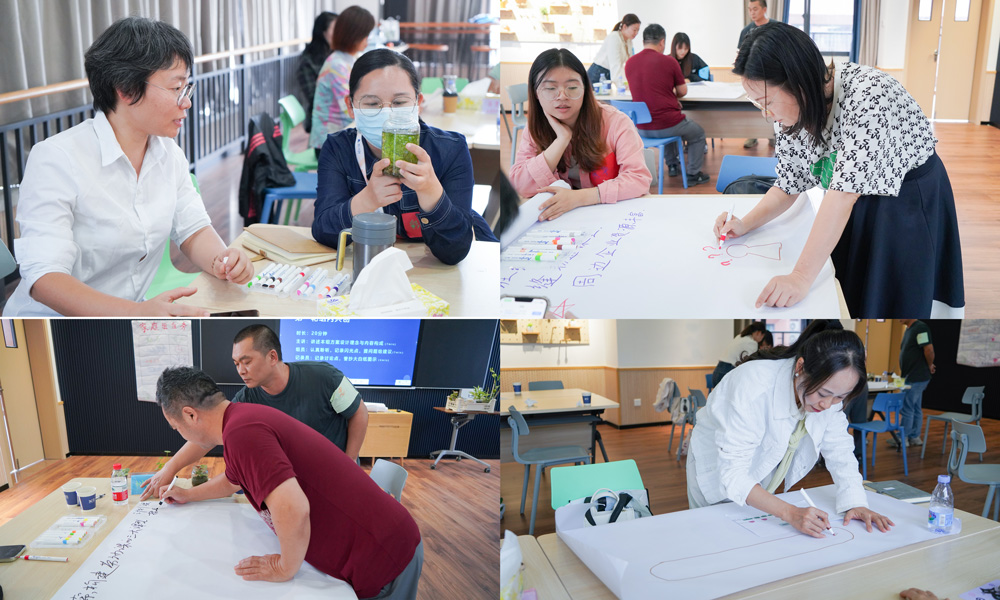 在培训的最后一个环节“劳动教育规划小组设计”中,老师们分成3个小组,由主讲者分享各自学校的劳动教育规划,组员聆听并提出疑问和建议,由记录员汇总。组员还参与了其他组的流动讨论,借鉴彼此的宝贵经验,进一步丰富本组规划设计。