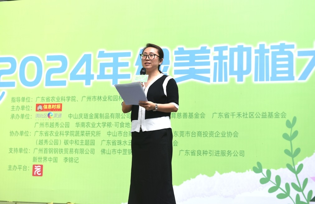 启动仪式上,广东省农业科学院蔬菜研究所主任张白鸽发表讲话,表示绿色种植在推动广东经济社会可持续发展中有着重要作用,并对此次绿美种植大挑战活动给予了高度评价。她表示,此次活动不仅是一次集体种植挑战行动,更是一次对生态文明理念的传播和普及,是广东推动绿色发展、建设美丽中国的实践。