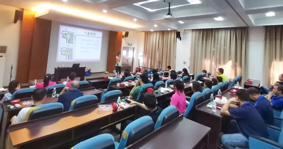 会上,马老师着重讲解了心肺复苏术,海姆利克急救法和自动体外除颤器(AED)的适用情况和操作重点,强调了应急救护的重要性,同时利用模拟人教具对实施徒手心肺复苏的流程,技术要领进行了演示。