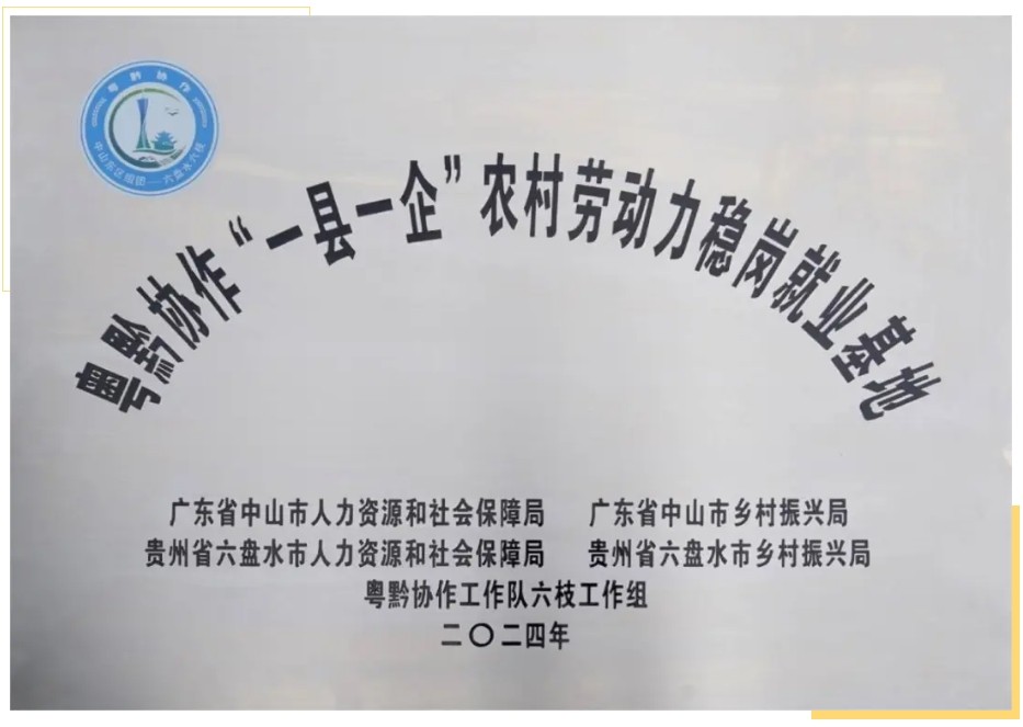 我司荣获粤黔协作“一县一企”农村劳动力稳岗就业基地牌匾