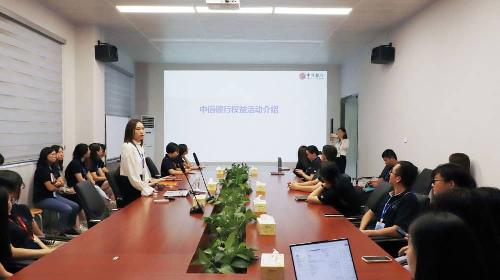 9月19日,中信银行到我司开展“金融宣教——金融知识普及走进中山庆琏金属制品有限公司”活动。此次活动旨在通过多样化的权益服务,增强企业与银行之间的粘性,同时为员工带来实实在在的福利和便利。