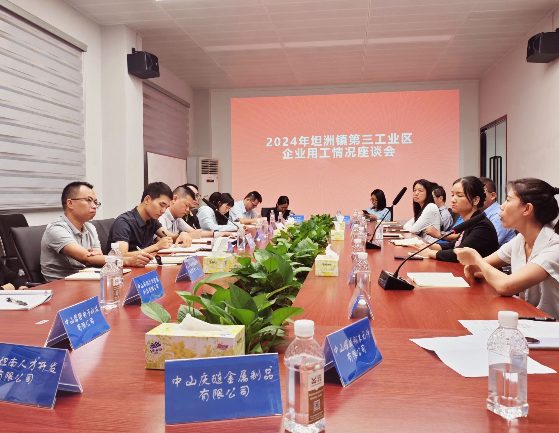 为及时掌握坦洲镇第三工业区企业的最新用工情况,研判分析当前用工形势,共商良策,合力攻克用工难题,11月8日,坦洲人社分局组织各企业到我司召开2024年坦洲镇第三工业区企业用工情况座谈会。坦洲镇副镇长杨荣柱、镇人社分局局长郑永晶、副局长陈建文、我司管理部经理张军、人事课长李培培,各企业人力资源部门负责人等20余人参加了会议。