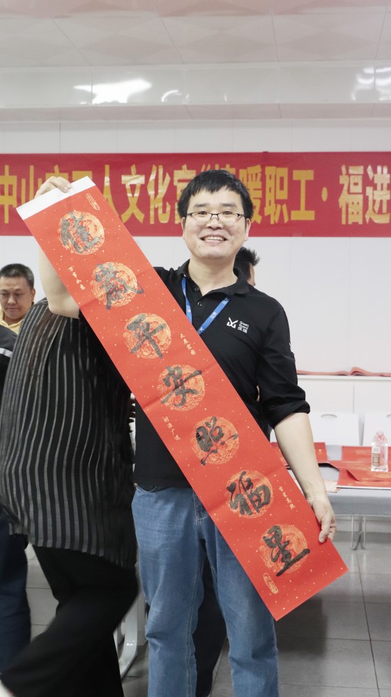 12月30日,2025年中山市总工会“情暖职工·福进万家”迎新春送春联公益活动在公司职工之家举行,来自中山市工人文化宫的老师们现场挥毫泼墨,用笔书春,用字迎春。墨香、红纸映衬在一起,一笔一划之间带着对未来的祝福、美好生活的期待,把新年的祝福送到庆琏员工手上。