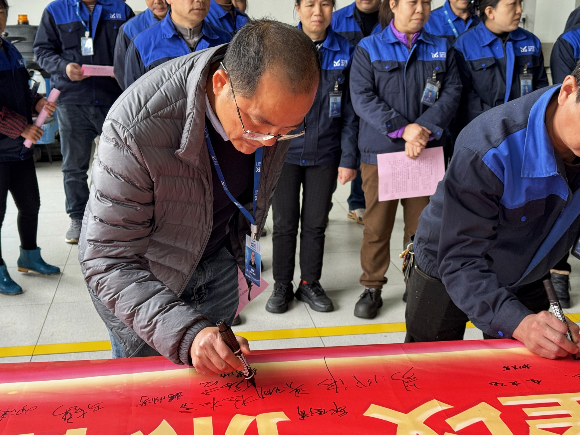 在活动现场,坦洲镇副镇长邓健强发表了重要讲话。他强调,安全生产是企业发展的生命线,特别是在春节后的复工复产关键时期,各企业更要高度重视安全生产工作,确保人员安全、设备完好、生产流程规范。邓健强副镇长还结合近年来国内外发生的典型安全生产事故案例,深入浅出地分析了事故发生的原因及教训,进一步增强了企业员工的安全意识。宣讲结束后,为了将安全生产理念深入人心,特别组织了一场的签字仪式。在宣传横幅上,“复工复产做到查隐患 真整改 抓培训 保安全”十八个大字赫然醒目。庆琏职工纷纷上前,郑重地在横幅上签下了自己的名字,以示对安全生产的承诺与决心。