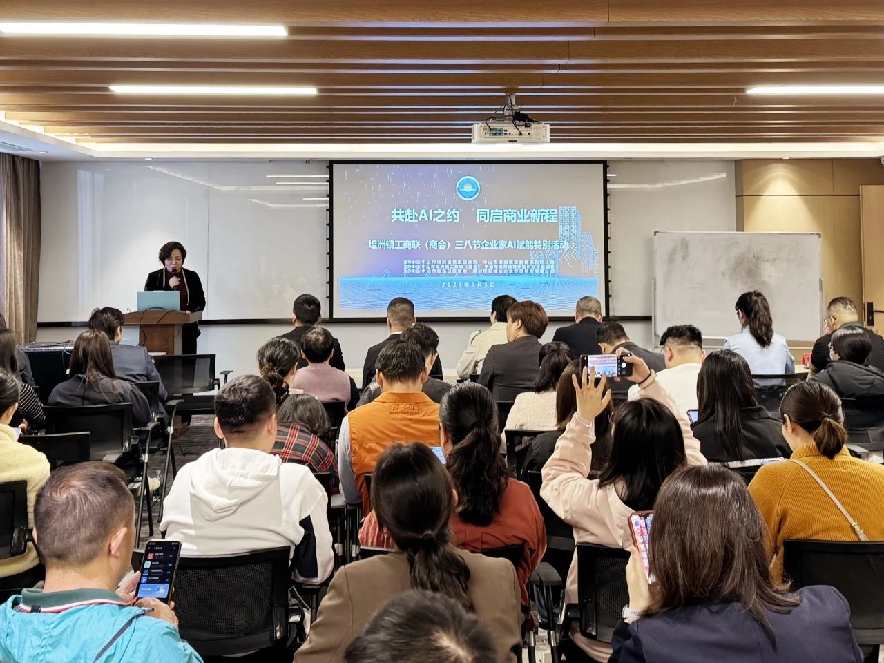 ▲3月5日,坦洲镇党政综合办公室和坦洲镇发展改革和统计局指导,坦洲镇工商联(商会)联合坦洲镇党外知识分子联谊会举办的“共赴AI之约,同启坦商新程——企业家AI赋能培训活动”
