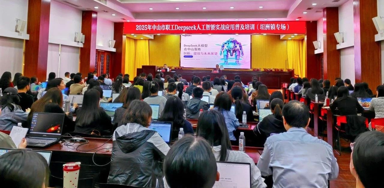 ▲3月13日,由中山市总工会主办,坦洲镇总工会联合中山市工人文化宫承办的中山市职工DeepSeek人工智能实战应用普及培训班(坦洲镇专场)