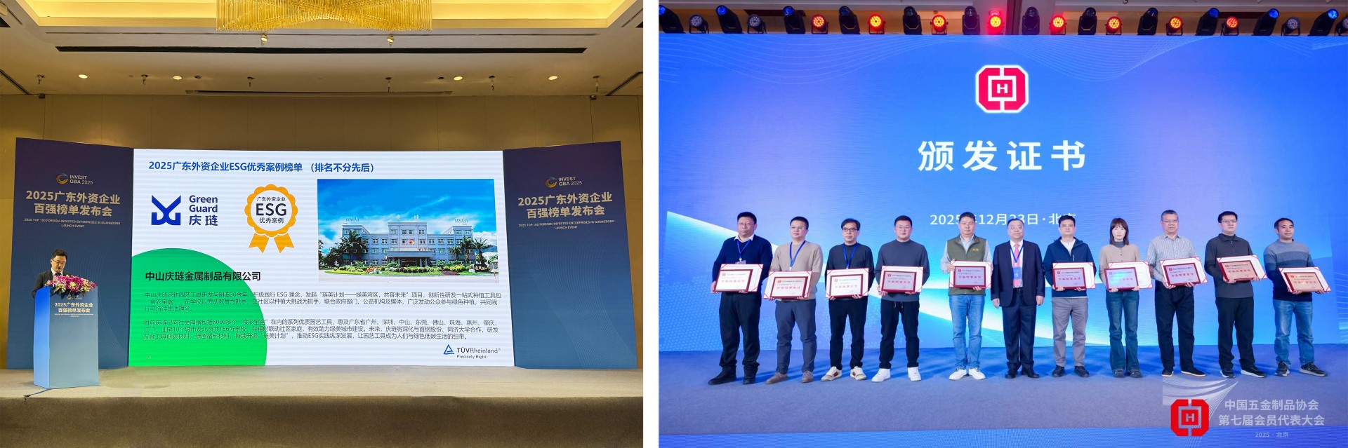 2025年10月30日,广东外资企业百强榜单发布,中山庆琏入选广东外资企业“深耕广东30年”榜单及ESG优秀案例榜单;12月23日,中国五金制品协会举办第七届会员代表大会,庆琏当选常务理事单位。