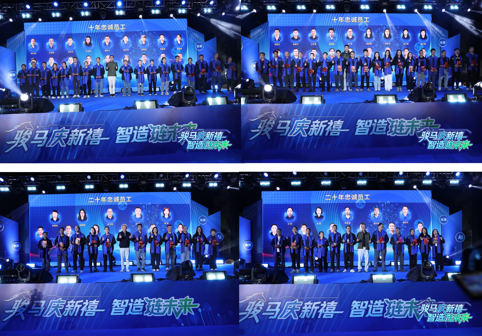 在庆琏,有一种力量,叫“坚守”;有一种精神,叫“忠诚”。晚宴隆重举行了十年、二十年忠诚员工及2025年度优秀员工颁奖仪式。数十位来自各岗位的忠诚员工依次登台,接受公司颁发的荣誉奖章。他们用岁月书写奉献,用坚守铸就典范,赢得全场最热烈的掌声,也成为全体庆琏人学习的榜样。