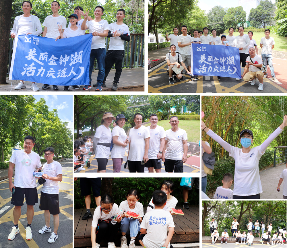 当日早上8:40分,180多名庆琏的家人们齐聚美丽的金钟湖牌楼前合影留念,随后在欢声笑语中踏上愉快的旅程。 微风徐徐,阳光正好。湛蓝的天空穿越婆娑树影,热情地拥抱着每个拥簇梦想前行的人。7月的金钟湖绿意盎然,空气特别清新徒,漫步在沿湖的木栈道上,曲径通幽,鸟语花香,别有一番诗情画意。在活动中,大家相互加油鼓劲,彼此的心在蓝天白云见证下更加贴近。