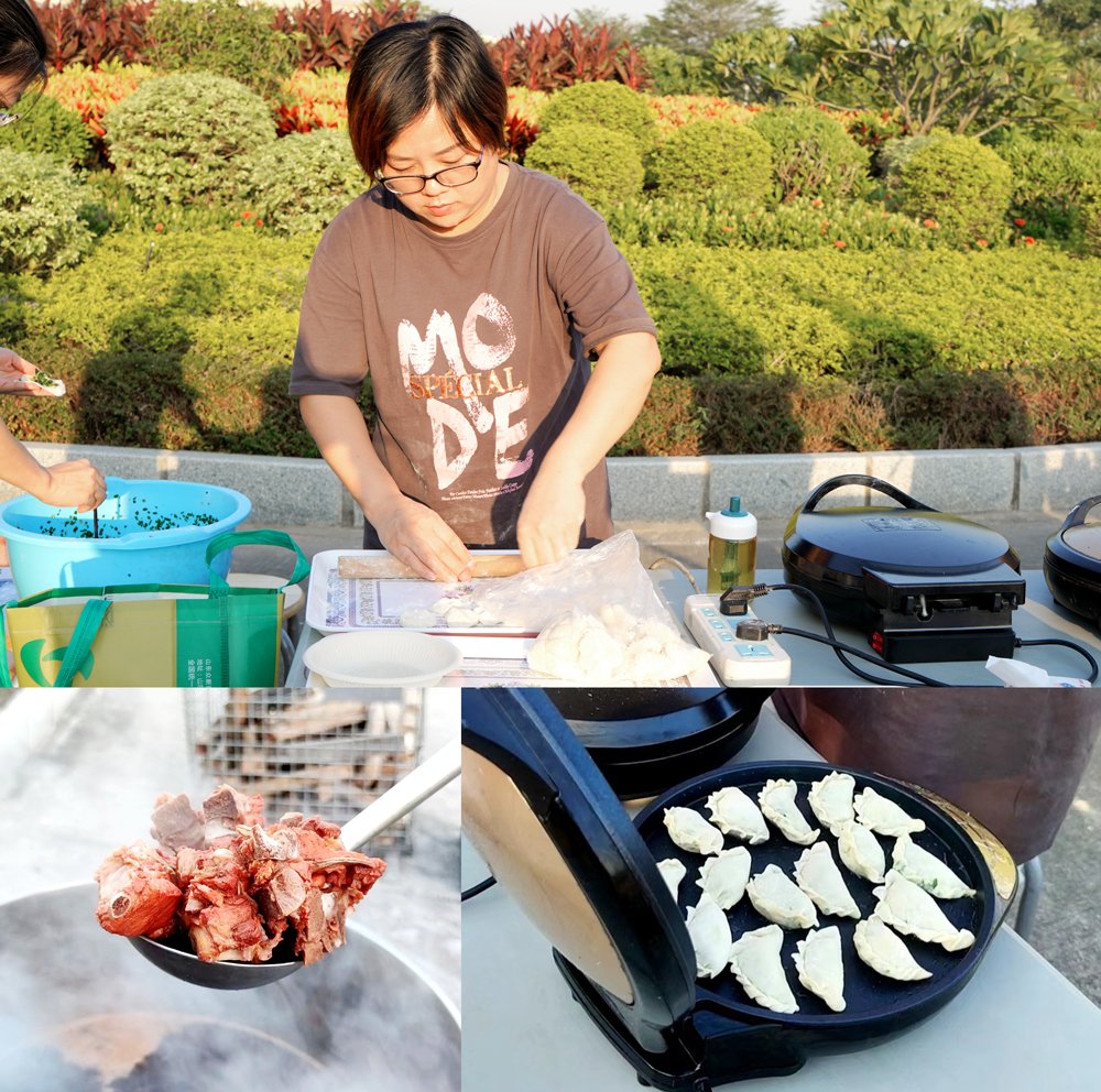 夕阳西下,烧烤炉子逐渐点燃,各部门搭建的土灶也升起了袅袅炊烟,混合着木炭和柴火独有的焦热气息。鸡翅和各种食材被烤得滋滋冒油,难以抵挡的肉香萦绕在鼻尖。啤酒气泡碰撞破裂的声音更增添了烧烤的风味。各个部门的摊位前围满了一群准备大快朵颐的食客们。庆琏大家庭相聚一起,边喝饮料边品尝各地美食、欢声笑语萦绕其中,有酒、有肉、有精彩!