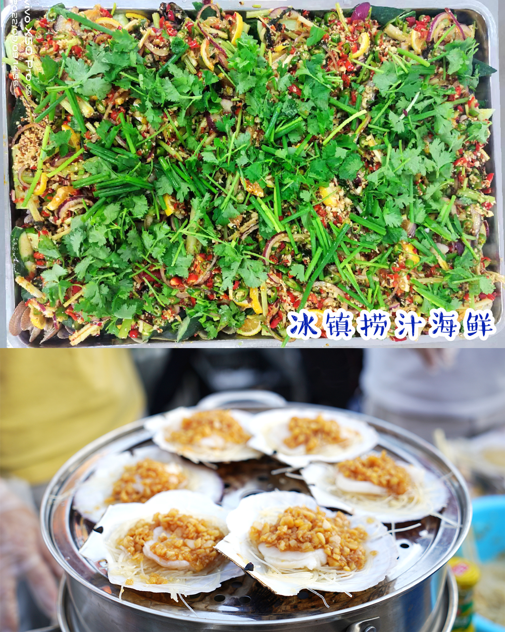 ↑制造部:苗乡香辣椒、冰镇捞汁海鲜、蒸扇贝