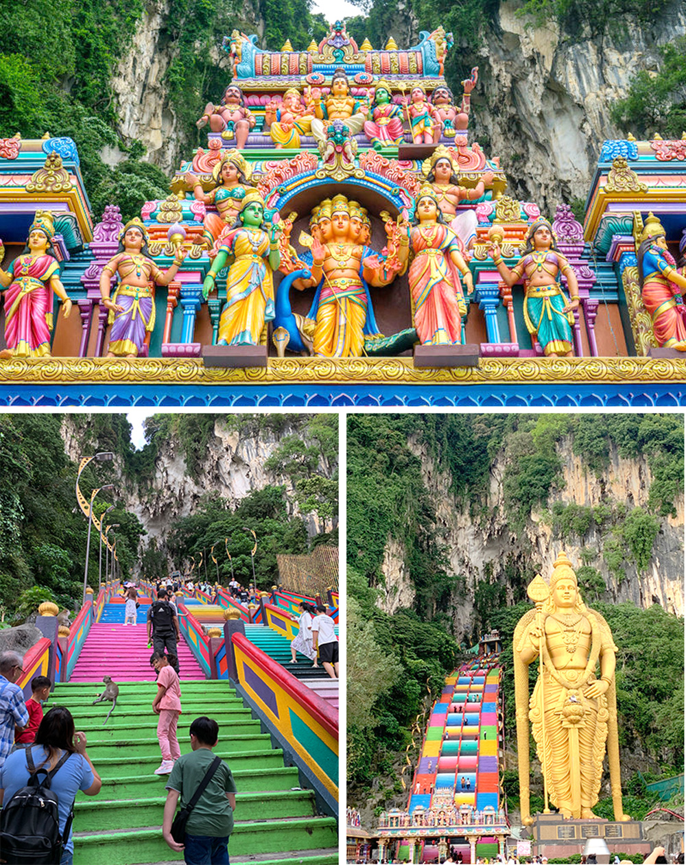 来到黑风洞,小伙伴们登上200多级台阶,进入洞中参观印度宗教圣地,它寂静、幽雅、深邃,让人心生敬畏。洞里的奇景层出不穷、目不暇接,眼花缭乱。大家惊讶于热带雨林从远古时代造就出来的神奇,那鬼斧神工的山峭古壁让人叹为观止,可真是自然和艺术的和谐统一!