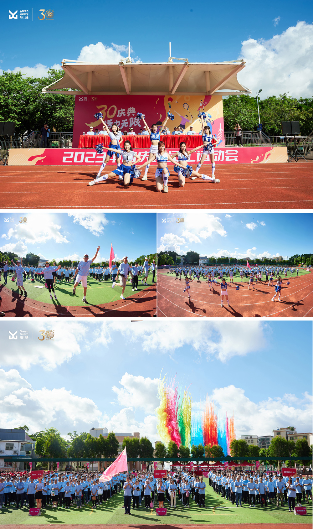 活动伊始,庆琏公司许家昌总经理致开幕辞,他说,运动会是展示各支队伍团结合作,奋勇争先的平台,大家要秉持和发扬“更高、更快、更强”的体育精神!祝愿全体运动员在今天的运动会上取得好成绩。并宣布:“三十庆典,活力无限”运动会正式开幕!随即,绚丽的彩烟腾空而起,朝着天空划出一道道五颜六色的痕迹,随风飘摇,仿佛从天幕中垂下的绶带,瞬间引爆了全场气氛。