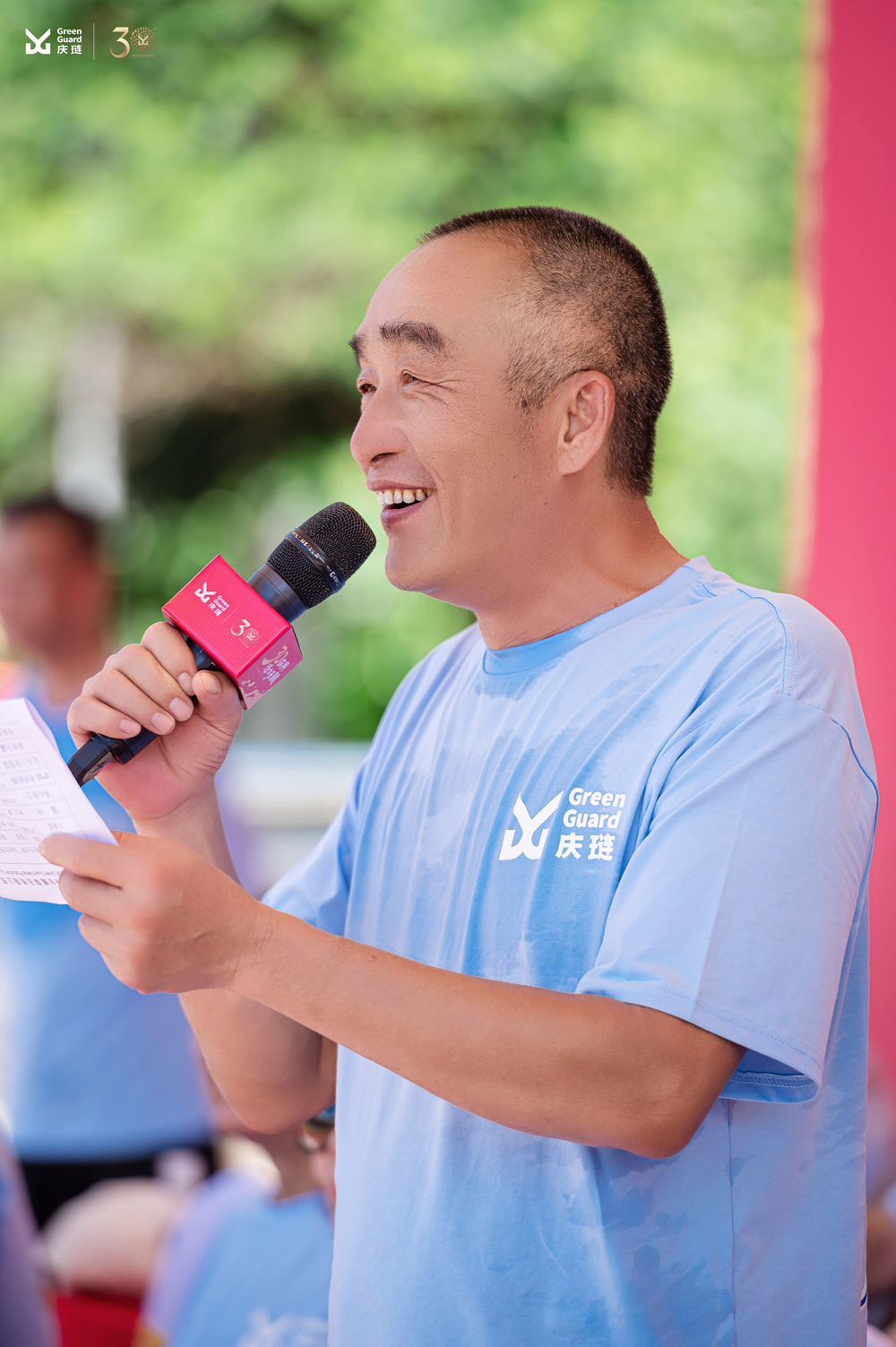 王光彬董事长上台发言:从三十年前的创业初期,到七村建厂,到成立一厂、扩建二厂,再到如今的现代化高新技术企业。庆琏的三十年,是一场腾越崛起的热血拼搏;是一幅与时俱进的生动画卷;是一篇惊涛骇浪的宏伟著作。总结了庆琏人三十年的成长和奉献,并向30年来对公司发展作出贡献的干部、各级管理人员、全体员工表示衷心的感谢。并号召全体庆琏人紧跟新时代步伐、开创新优势,开辟新未来,成就百年庆琏!