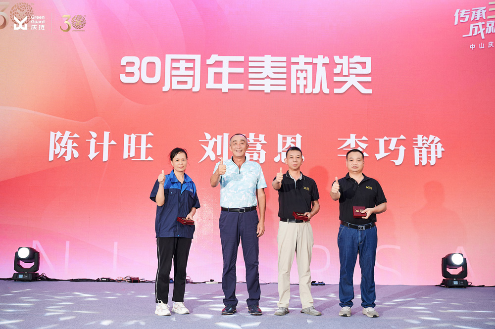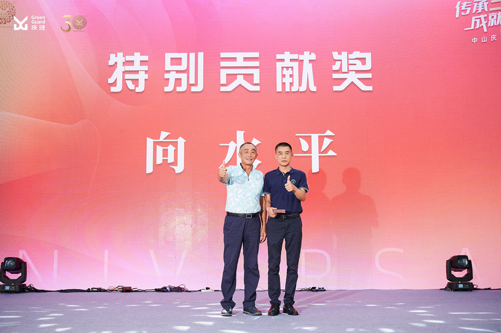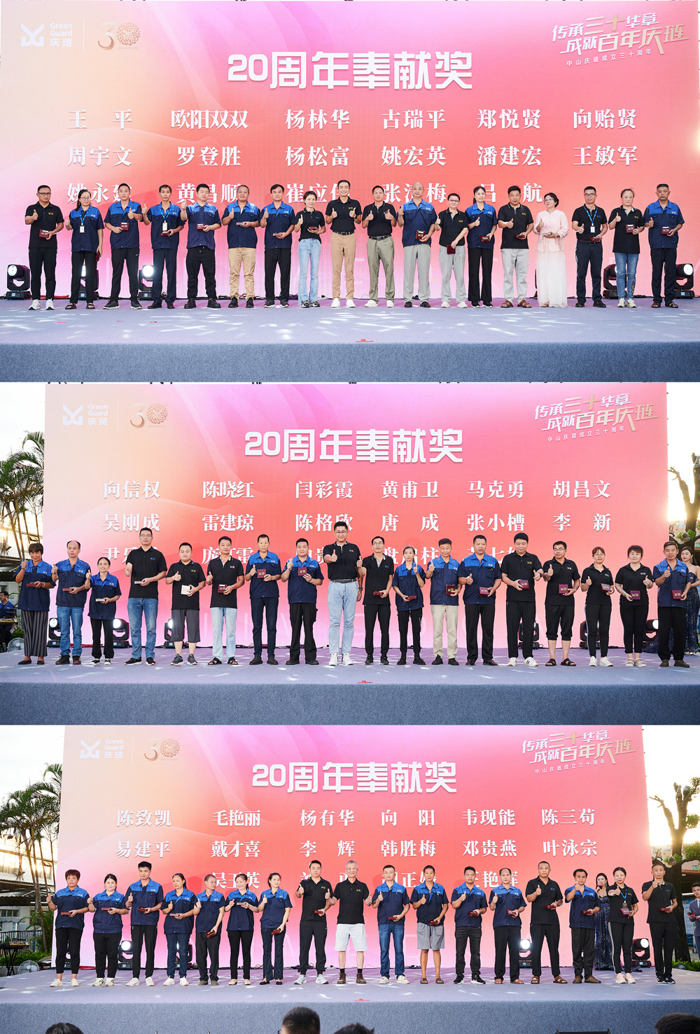 晚会特别为在公司工作20年、30年的庆琏人颁发《20周年奉献奖》、《30周年奉献奖》以及《特别贡献奖》。他们从青春年少时就加入庆琏,一步步从基层员工成长为领导者或骨干,他们参与了公司从成立到现在的各个阶段,至今仍为公司的发展而忙碌奋斗,锲而不舍、全力以赴。他们将“精于工,匠于心,品于行,名于世”的庆琏宗旨,内化于心、外化于行,在一代代庆琏人中传承延续,在庆琏的舞台上奉献全部的力量。