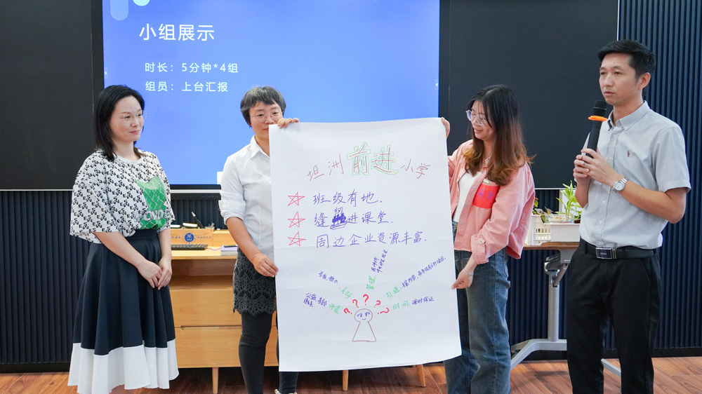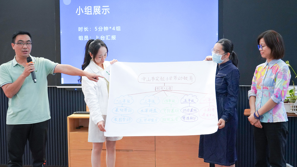 在培训的最后一个环节“劳动教育规划小组设计”中,老师们分成3个小组,由主讲者分享各自学校的劳动教育规划,组员聆听并提出疑问和建议,由记录员汇总。组员还参与了其他组的流动讨论,借鉴彼此的宝贵经验,进一步丰富本组规划设计。