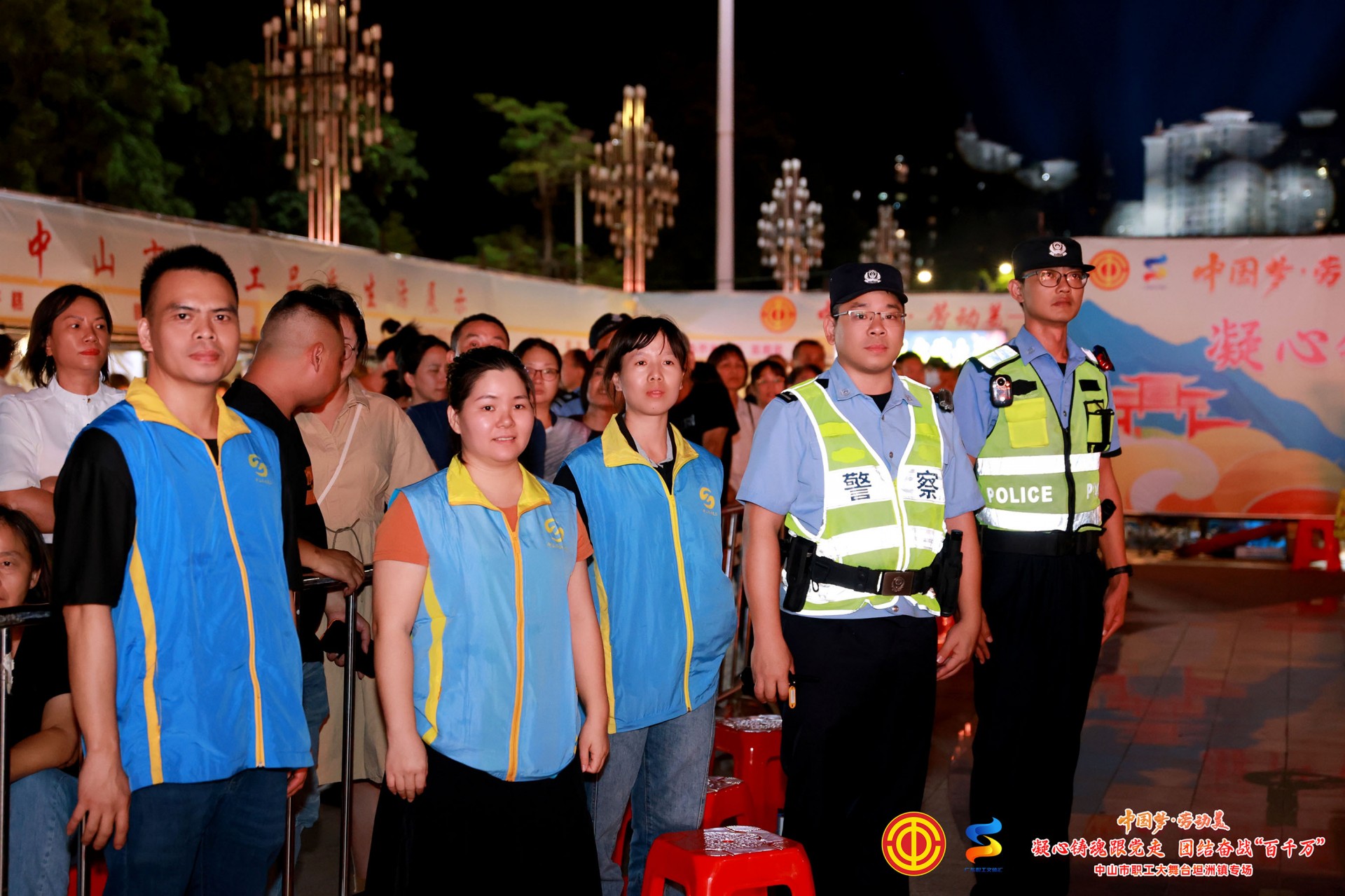 舞台下,我司10余名志愿者忙碌的身影出现在近3000人观演的活动现场。他们分布在观众席、停车场、职工集市等位置发放物料、布置场地、维持秩序......穿梭奔走的身影为舞台增添别样色彩。