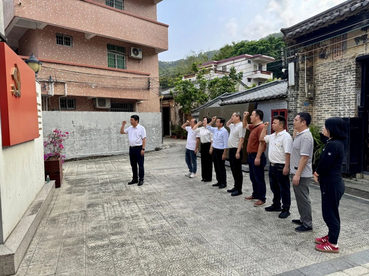 随后,全体党员前往坦洲镇金花山珠纵一支队队部旧址开展现场学习。在庄严的历史遗址前,党员们重温了入党誓词,缅怀革命先烈,深刻感悟了党的奋斗历程和光荣传统,进一步增强了爱党爱国情怀,坚定了理想信念。
