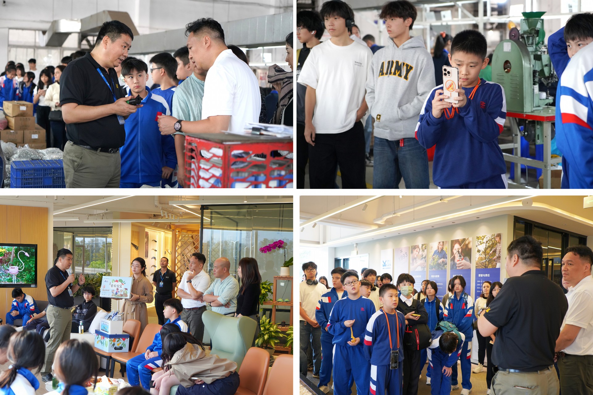 在马克勇协理、总经理助理张楠、品质部副课长焦建军等庆琏职工的陪同和讲解下,研学团队探秘公司生产车间、参观工具展厅,系统了解庆琏从一家小工厂成长为行业标杆的发展历程。同学们对庆琏在园林工具领域的持续创新表现出浓厚兴趣,特别是“食农宝盒”的研发理念与实际应用,引发了大家关于劳动教育与工具制造结合的深入思考。