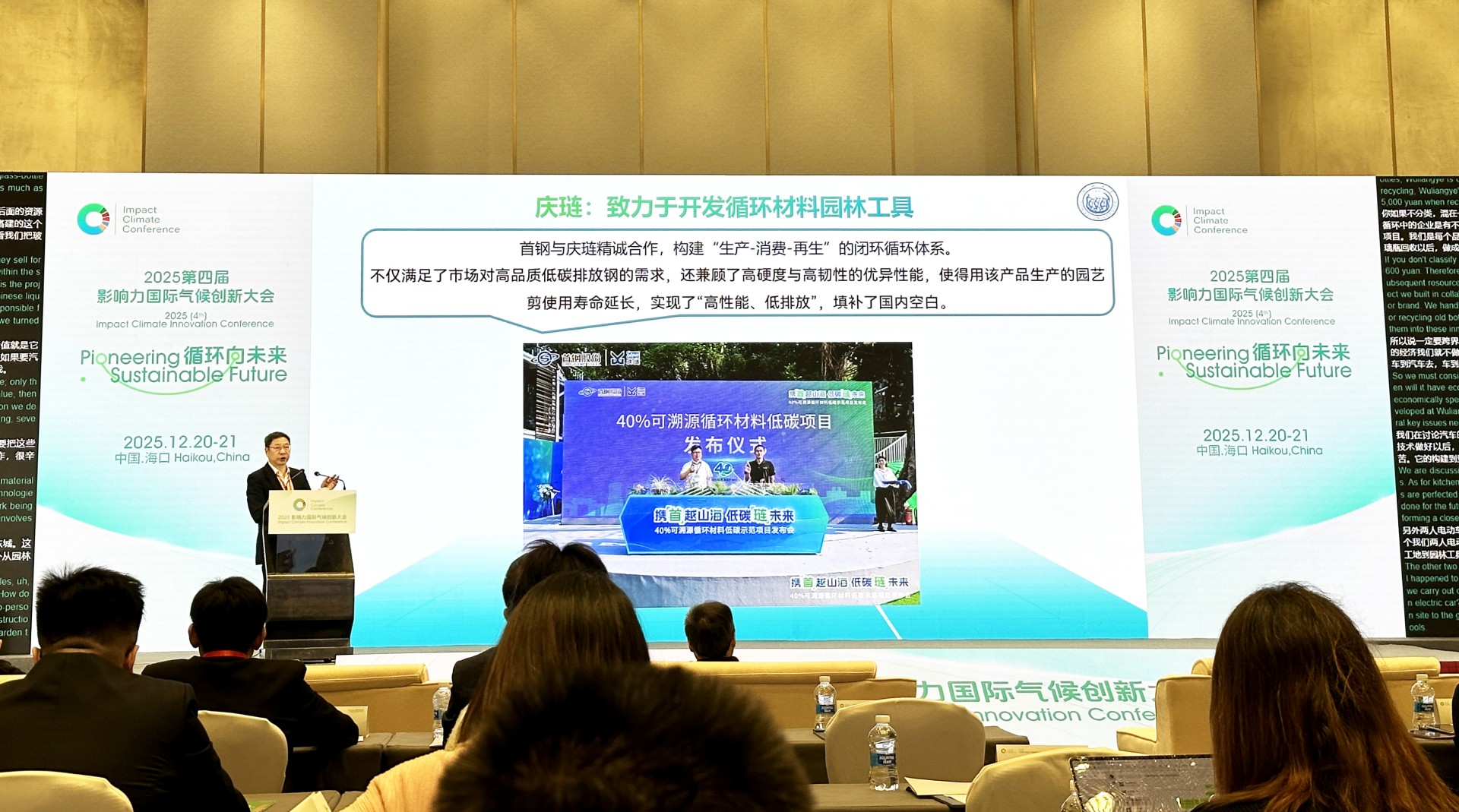中山庆琏在循环经济领域的持续探索,也受到学界的高度关注与认可。联合国环境署-同济大学环境与可持续发展学院特聘教授,同济大学生态文明与循环经济研究所所长杜欢政在大会开幕式暨主旨论坛的“生产者责任延伸制推动产品闭路循环”演讲上,特别以首钢与中山庆琏的精诚合作为例,赞许了庆琏在构建“生产-消费-再生”的闭环循环体系的先锋探索。双方共同研发的新材料S75YYJ不仅满足了市场对高品质低碳排放钢的需求,还兼顾了高硬度与高韧性的优异性能,使得用该产品生产的园艺剪使用寿命延长,实现了“高性能、低排放”,填补了国内空白。