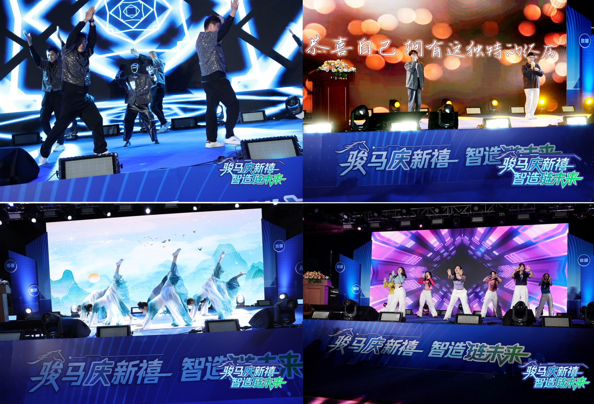 晚宴以气势恢宏的开场节目《刻梦·骏业宏图》正式启幕,瞬间点燃全场热情。